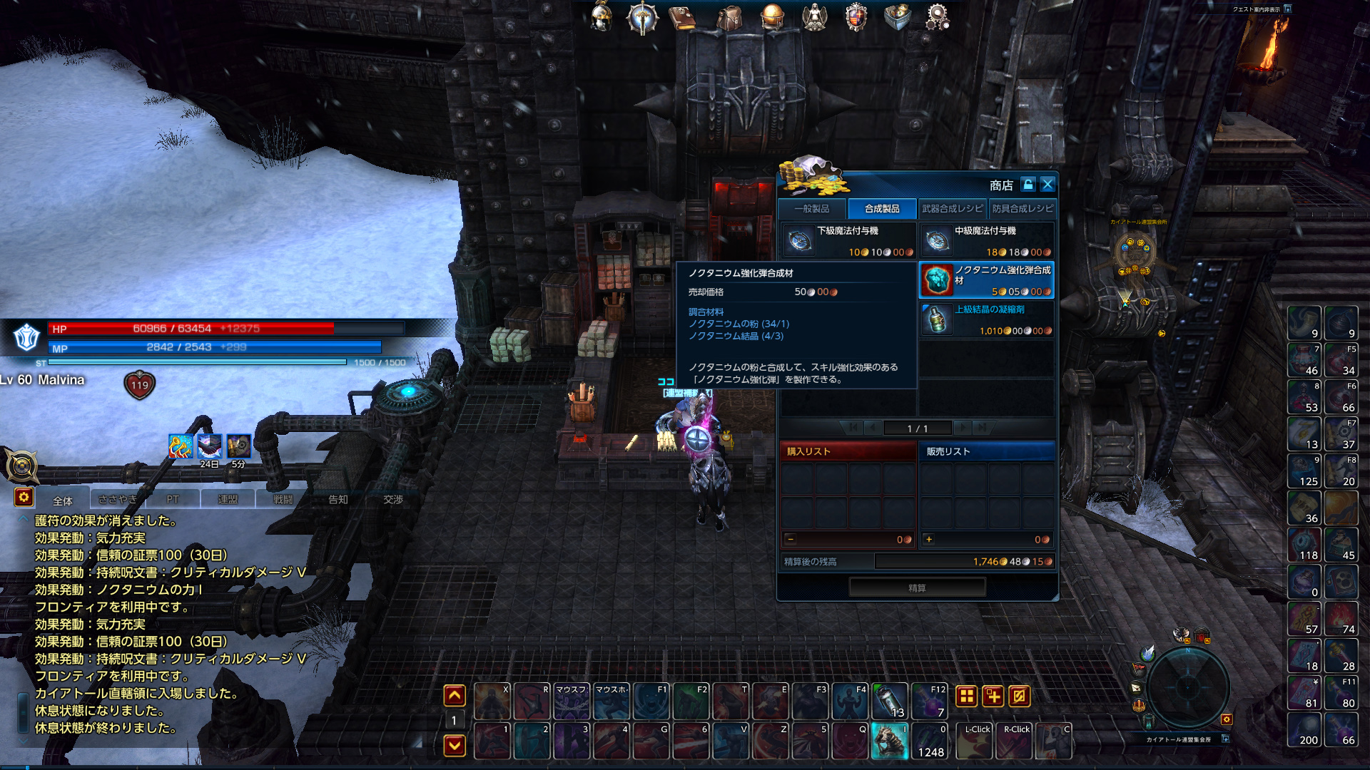 材料はノクタニウム結晶3個+粉1個で合成材1個につきノクタニウムが25個作れる。